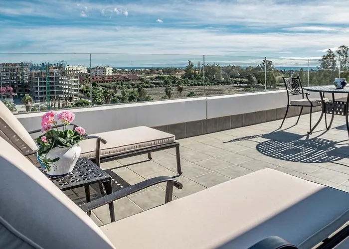 Jg36B- Luxury Penthouse With Spacious Balcony Marbella, un appartamento con 3 camere da letto, è situato a 2 km dal Casino di Marbella e offre una piscina esterna stagionale. L'appartamento dispone di una terrazza con una vista sulle montagne.